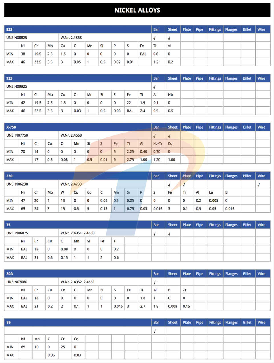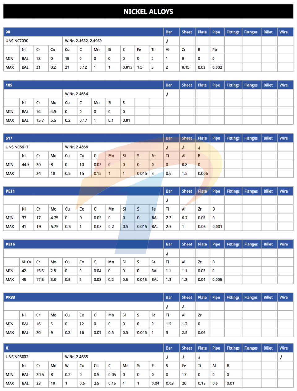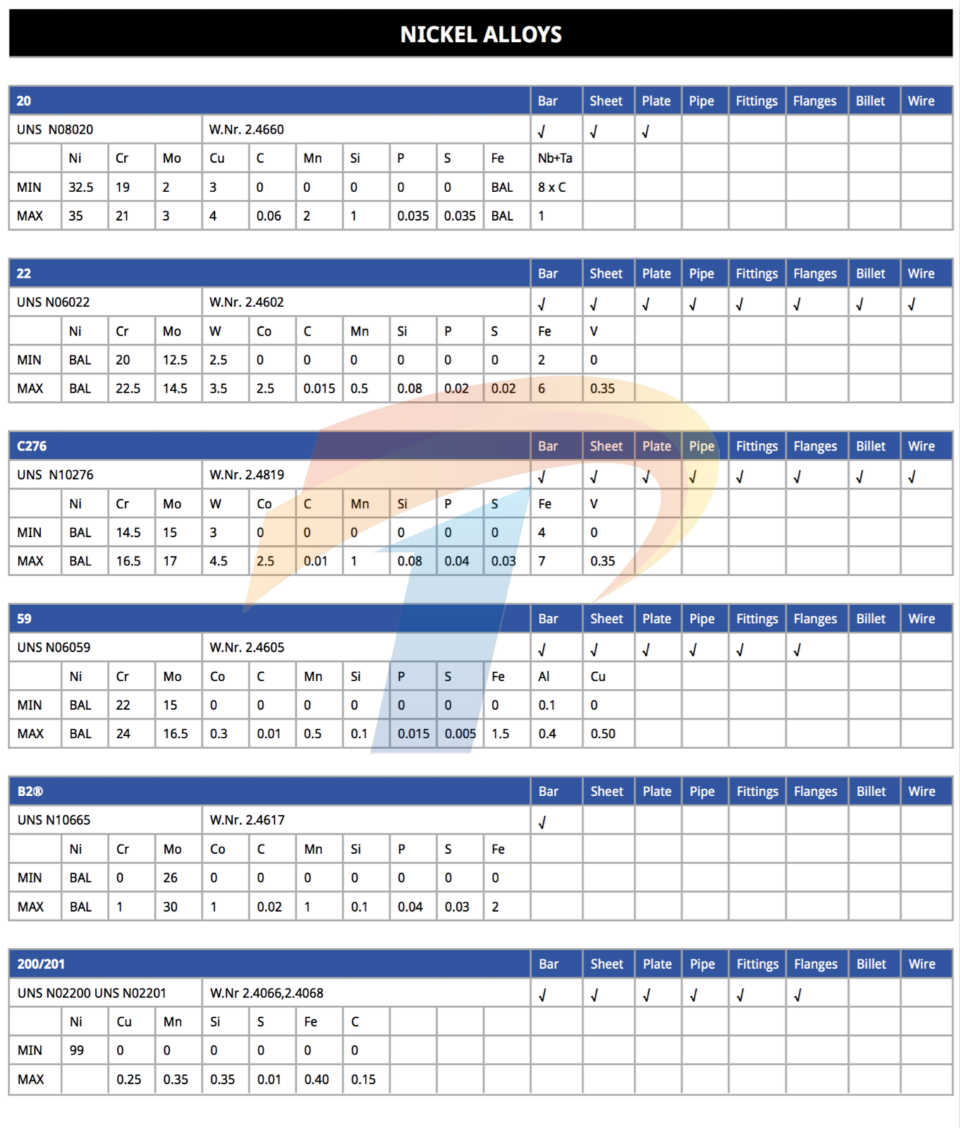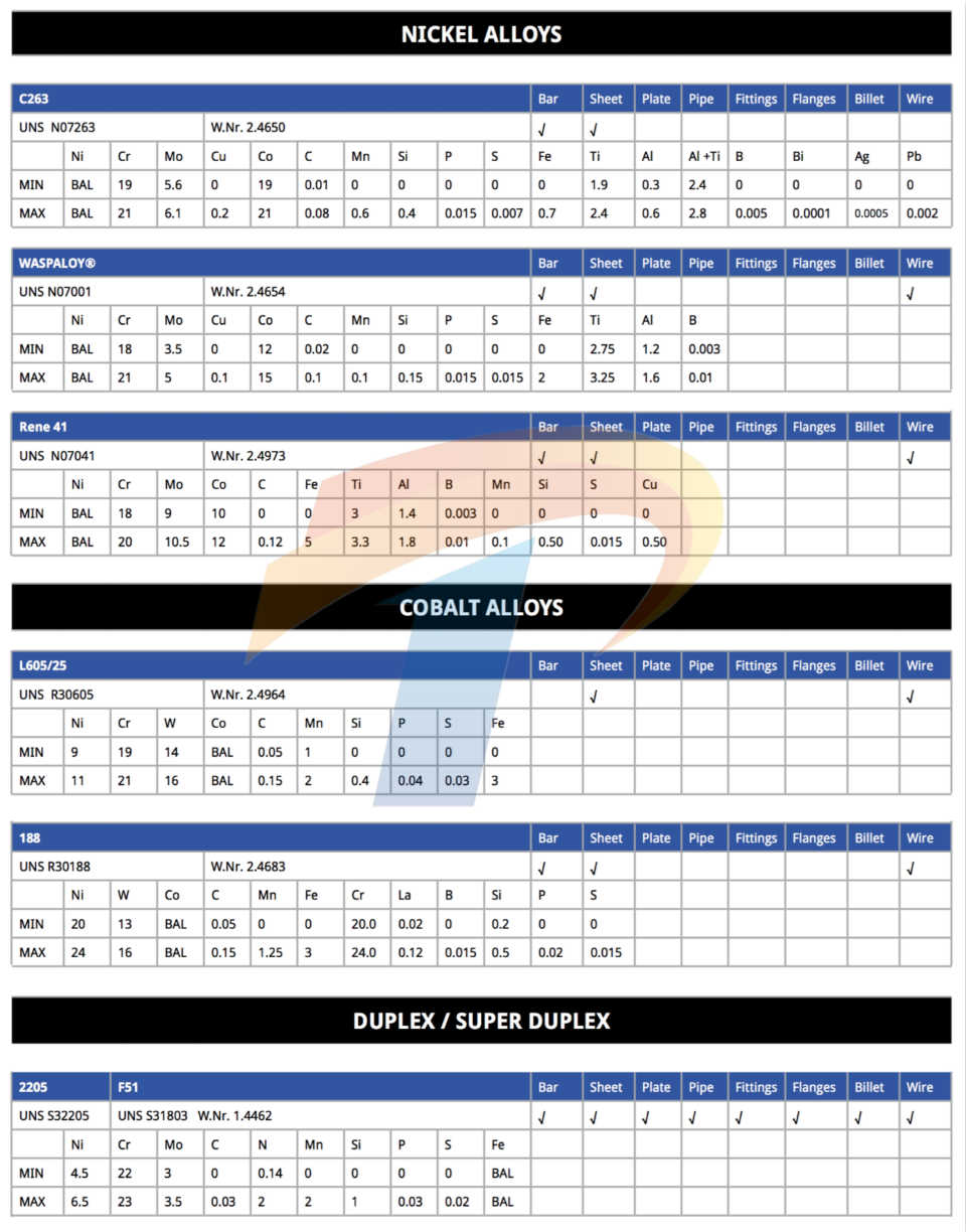 镍基合金/高温合金/特种合金/特种不锈钢