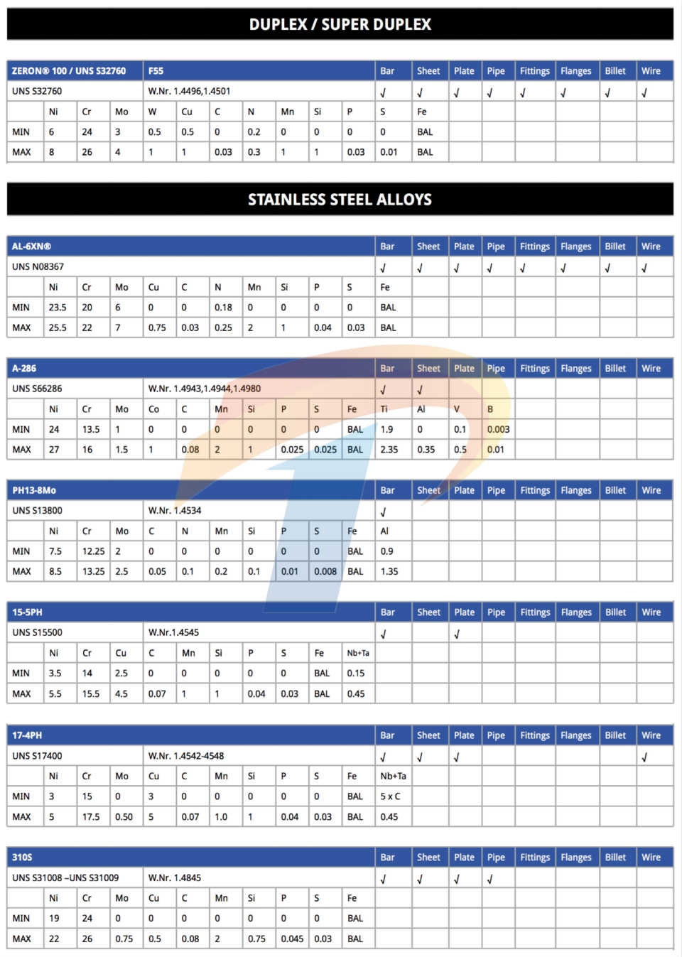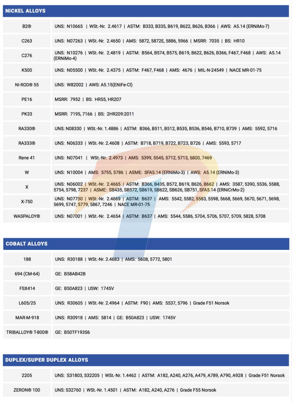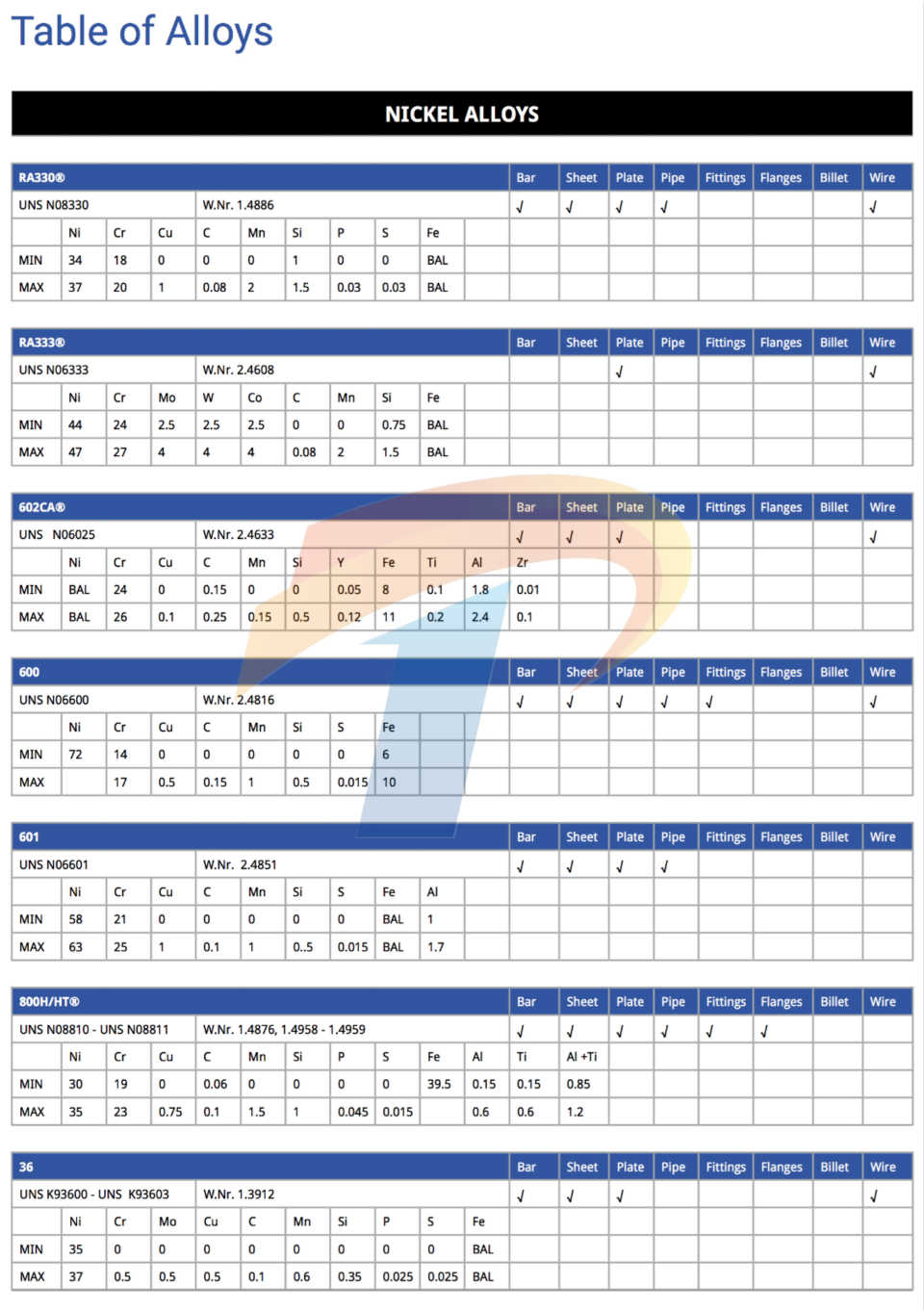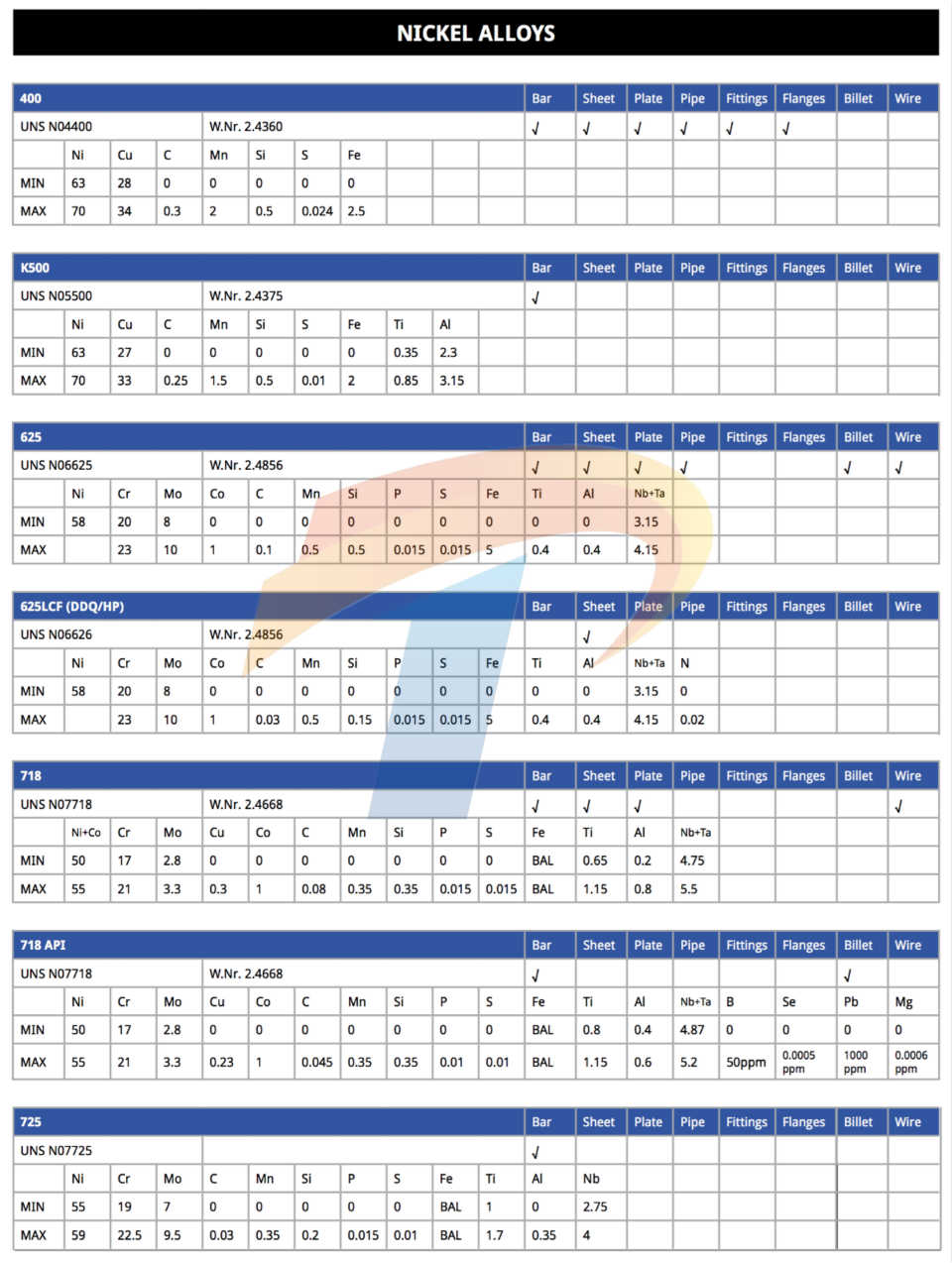 镍基合金/高温合金/特种合金/特种不锈钢